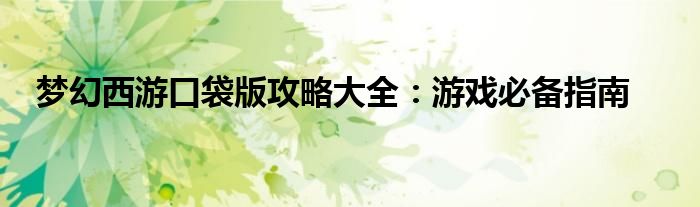 梦幻西游口袋版攻略大全:游戏必备指南