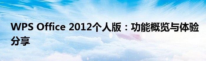 本文将为大家介绍WPS Office 2012个人版,包括其功能概览、操作体验、兼容性以及与其他办公软件的对比等内容。让我们一起了解这款实用的办公软件,为您的日常办公生活带来便利。