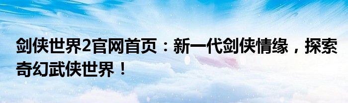 剑侠世界2官网首页:新一代剑侠情缘,探索奇幻武侠世界!