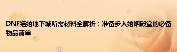 本文将详细介绍在DNF(地下城与勇士)游戏中结婚所需的材料,帮助即将步入婚姻殿堂的玩家们了解所需准备物品,确保顺利举行婚礼,共同见证游戏中的浪漫时刻。