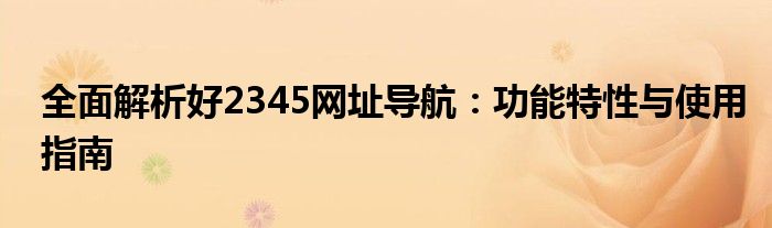 本文将详细介绍“好2345网址导航”的各项功能特性,包括其易用性、安全性、个性化设置等方面的特点,同时提供详细的使用指南,帮助用户更好地理解和使用这一工具。