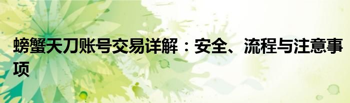 螃蟹天刀账号交易详解:安全、流程与注意事项