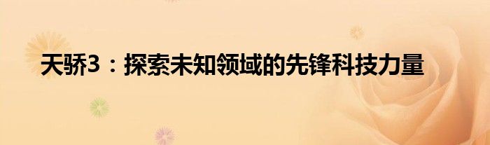 总之,天骄3作为探索未知领域的先锋科技力量,以其强大的技术优势和广泛的应用领域,成为业界的璀璨明星。我们有理由相信,天骄3将在未来继续发挥重要作用,为人类生活带来更多惊喜。