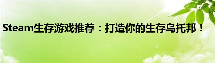 Steam生存游戏推荐:打造你的生存乌托邦!