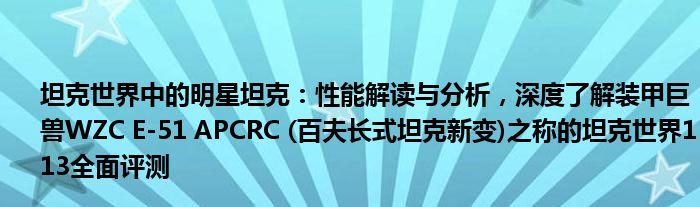 坦克世界中的明星坦克:性能解读与分析,深度了解装甲巨兽WZC E-51 APCRC (百夫长式坦克新变)之称的坦克世界113全面评测