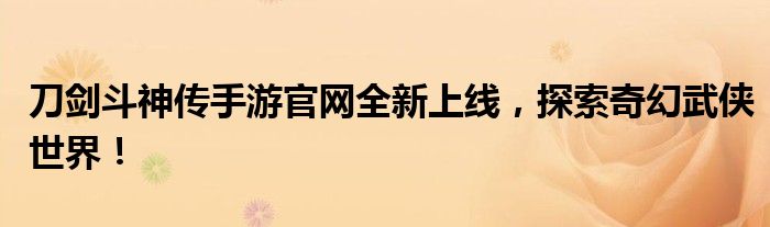 刀剑斗神传手游官网全新上线,探索奇幻武侠世界!