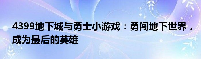 总的来说,4399地下城与勇士小游戏是一款充满刺激和冒险的游戏。在这个游戏中,你需要发挥自己的战斗技巧和智慧,与其他玩家合作,勇闯地下世界,成为最后的英雄!