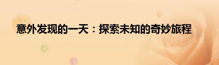 意外发现的一天:探索未知的奇妙旅程