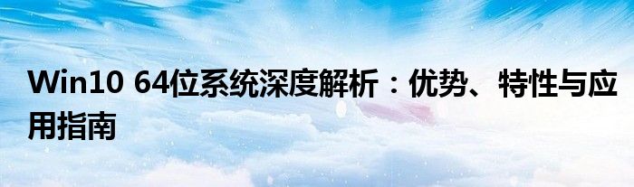 本文详细介绍了Win10 64位系统的优势、特性及应用指南,希望能帮助您更好地了解和使用Win10 64位系统。在使用过程中,请确保硬件配置满足要求,注意软件安装的兼容性,定期进行系统优化和安全防护,遇到问题及时寻求解决方案。
