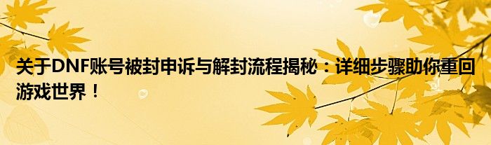 关于DNF账号被封申诉与解封流程揭秘:详细步骤助你重回游戏世界!