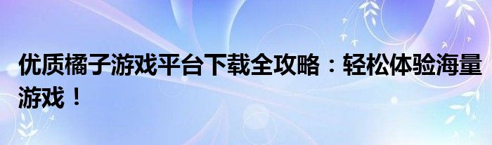优质橘子游戏平台下载全攻略:轻松体验海量游戏!