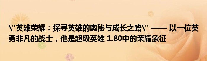 "英雄荣耀:探寻英雄的奥秘与成长之路" —— 以一位英勇非凡的战士,他是超级英雄 1.80中的荣耀象征