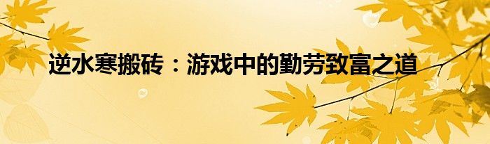 本文将探讨在热门网络游戏《逆水寒》中,如何通过搬砖这一行为实现游戏中的财富积累。我们将深入了解搬砖在游戏中的含义、策略和方法,以及它对玩家角色发展的影响。通过本文,您将掌握如何在《逆水寒》的世界里通过勤劳和智慧赚取丰厚的游戏收益。