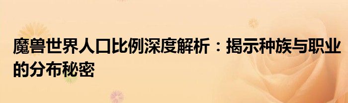 本文将针对魔兽世界中的种族和职业分布进行深度解析,通过数据展示人口比例,帮助玩家了解游戏世界的种族和职业分布现状。在魔兽世界这一庞大的虚拟世界中,不同种族和职业的角色构成了丰富多彩的游戏生态。本文将详细介绍每个种族和职业的受欢迎程度以及比例情况。