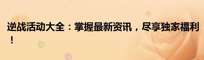 逆战活动大全:掌握最新资讯,尽享独家福利!