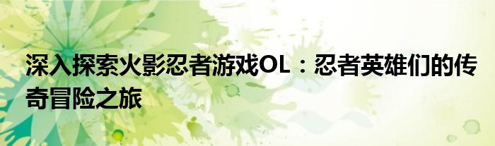 深入探索火影忍者游戏OL:忍者英雄们的传奇冒险之旅