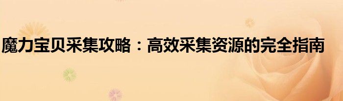 本文详细介绍了魔力宝贝采集的相关内容,包括基础知识、高效采集技巧和攻略等。希望本文能帮助玩家更好地进行游戏,提高采集效率,获得更多的游戏资源。