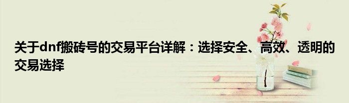 关于dnf搬砖号的交易平台详解:选择安全、高效、透明的交易选择