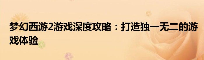 本文将围绕梦幻西游2游戏展开,为玩家提供全面的游戏指南和深度攻略,帮助玩家更好地体验游戏,打造独一无二的游戏体验。