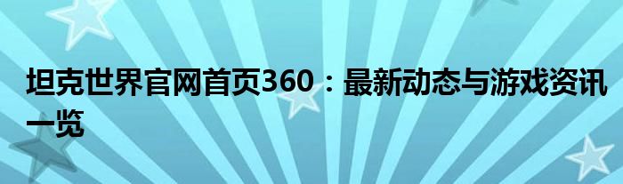 坦克世界官网首页360:最新动态与游戏资讯一览
