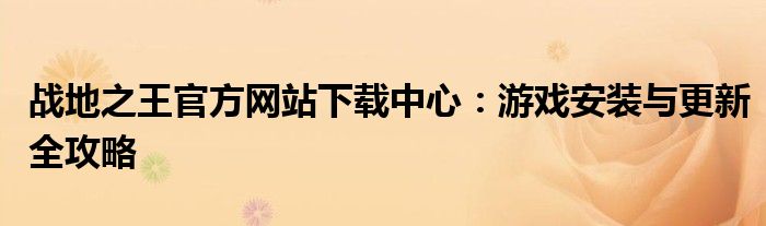 战地之王官方网站下载中心:游戏安装与更新全攻略