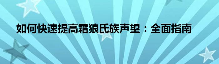 霜狼氏族是游戏中的一个重要势力,声望等级的高低会影响玩家在游戏中的福利待遇和权限。提高声望等级是玩家在游戏中不可或缺的一部分。本文将详细介绍如何快速提高霜狼氏族的声望。