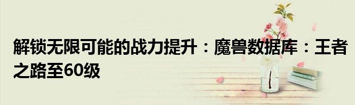 总之,“魔兽数据库:王者之路至60级”将为您带来前所未有的游戏体验,让您轻松解锁无限可能的战力提升!赶快加入我们,一起踏上魔兽世界的王者之路吧!