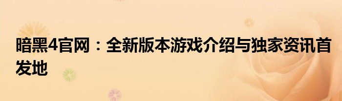 一、暗黑4官网概述