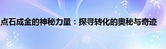 点石成金的神秘力量:探寻转化的奥秘与奇迹