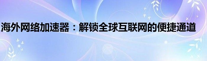 海外网络加速器:解锁全球互联网的便捷通道