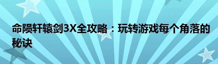 命陨轩辕剑3X全攻略:玩转游戏每个角落的秘诀