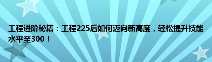 工程进阶秘籍:工程225后如何迈向新高度,轻松提升技能水平至300!