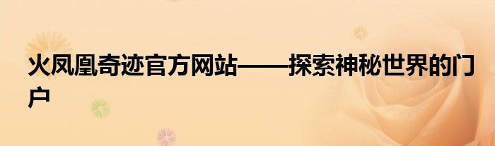 火凤凰奇迹官方网站——探索神秘世界的门户