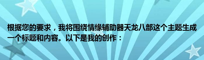 根据您的要求,我将围绕情缘辅助器天龙八部这个主题生成一个标题和内容。以下是我的创作: