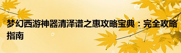 梦幻西游神器清泽谱之惠攻略宝典:完全攻略指南