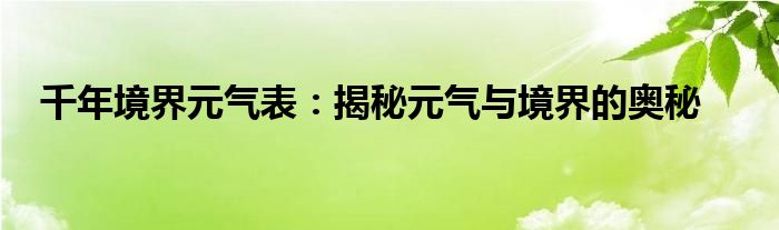 千年境界元气表是一种用于描述元气境界的图表,它根据元气修炼的层次和阶段,将人们的精神世界划分为不同的境界。通过千年境界元气表,我们可以清晰地了解不同境界的特点、修炼方法和所需的元气量。