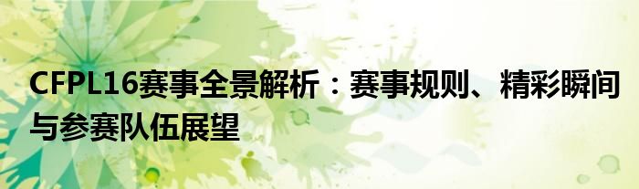 CFPL16赛事全景解析:赛事规则、精彩瞬间与参赛队伍展望