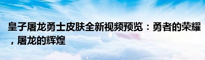 皇子屠龙勇士皮肤全新视频预览:勇者的荣耀,屠龙的辉煌