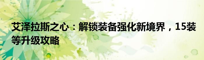 艾泽拉斯之心:解锁装备强化新境界,15装等升级攻略