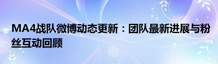 MA4战队微博动态更新:团队最新进展与粉丝互动回顾