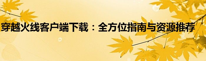 本文将为大家介绍关于“穿越火线客户端下载”的全方位指南与资源推荐。无论您是新手玩家还是老玩家回归,本文将为您提供最详细、最实用的下载方法与建议。
