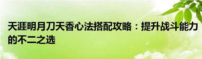 天涯明月刀天香心法搭配攻略:提升战斗能力的不二之选