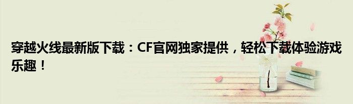 总之,想要下载穿越火线并体验这款游戏吗?快来CF官网吧!这里提供最新版的下载链接和丰富的游戏资源,让您可以轻松享受游戏乐趣。
