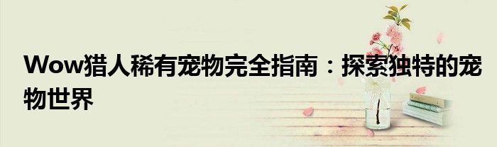 Wow猎人稀有宠物完全指南:探索独特的宠物世界