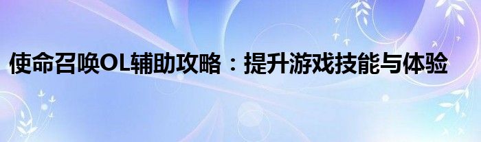 使命召唤OL辅助攻略:提升游戏技能与体验