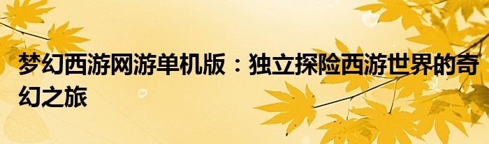 梦幻西游网游单机版:独立探险西游世界的奇幻之旅
