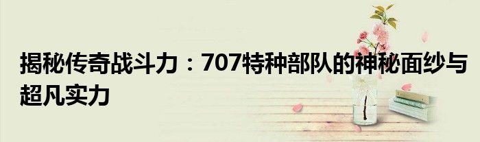 本文将带你深入了解被誉为顶尖战斗力量的“707特种部队”。这支特种部队的神秘面纱背后,蕴含着怎样的发展历程、特殊的战术运用,以及在全球化安全环境下如何担当重任,将会逐步揭开。从组织历程、独特训练到战略战术分析,我们一同走进这支特种部队的世界。