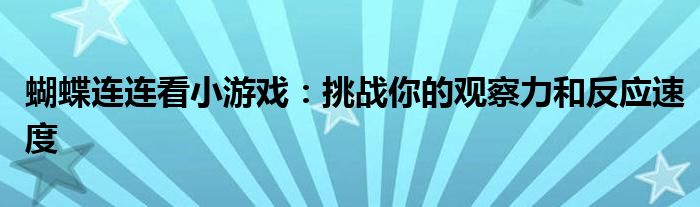 蝴蝶连连看小游戏:挑战你的观察力和反应速度