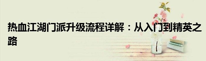 四六级至九级阶段为精英阶段。在这个阶段中,门派的实力和影响力已经相当可观。此时的主要任务是与其他门派竞争,争夺江湖地位和资源。为了进一步提升门派实力,可以尝试招收更多的精英成员、拓展门派产业以及提升门派特色技能等策略。在这一阶段还需要不断地深化与盟友之间的合作关系以及在战斗、PK竞技、团队合作等方面的强化与磨炼来提升江湖地位和影响力。此外还需要加强门派内部的管理和运营策略制定以确保门派的长期发展壮大。在这个阶段可以举办各种大型活动来提升门派的知名度和凝聚力让成员们更加团结一心共同为门派的繁荣而努力。同时也要注意与其他门派的交流合作共同推动江湖的发展进步走向巅峰之巅峰的路上并不是一帆风顺的需要持续不断的努力和进步不断探索适合自己的发展策略才是成功的关键所在总之这个阶段是一个全面发展强化内部和外部各方面因素的阶段只有在各个方面都达到了一定的水平才能成为真正的江湖巅峰力量 。 总的来说在热血江湖中门派升级流程是一个充满挑战和机遇的过程需要不断地努力和创新只有掌握了正确的升级流程和发展策略才能成为真正的江湖巅峰力量。 需要注意的是在升级过程中还需关注游戏内的更新动态及时调整发展策略以适应游戏环境的变化确保门派的持续发展壮大。