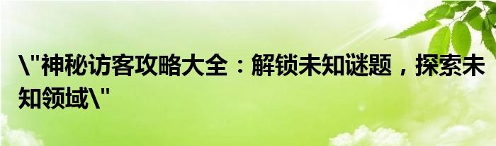 "神秘访客攻略大全:解锁未知谜题,探索未知领域"
